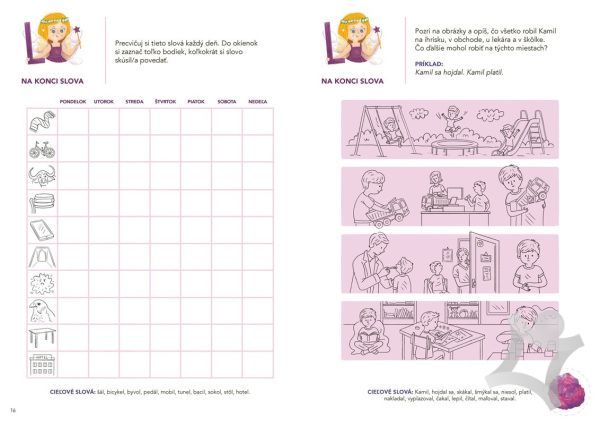 Vitajte v Slovíčkove!Slovná zásoba je nosným pilierom jazyka a reči. Tento pracovný zošit pomáha deťom rozvíjať slovnú zásobu podstatných mien a zámen. Obsahuje 8 tematických okruhov, v rámci ktorých dieťa plní rôzne zábavné úlohy. Jednotlivé okruhy sú sprevádzané indíciami, ktoré na záver dieťa spojí do šifry, a vylúštením šifry získa...