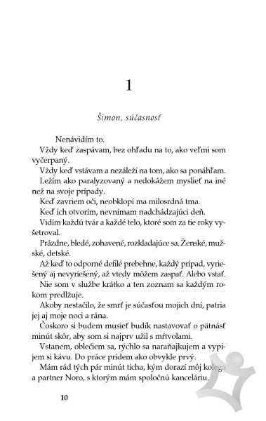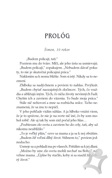 Pri pohľade na ňu by nemal myslieť na to, ako vyzerajú jej vlasy bez závoja. Pri pohľade na neho by nemala myslieť na to, aké by to bolo, keby sa dotkol jej tváre, keby ju pohladil. Šimonova temnota tancuje s Haniným svetlom vždy, keď sa stretnú, a náklonnosť medzi nimi sa prehlbuje každým nádychom, aj keď sa jej obaja bránia.