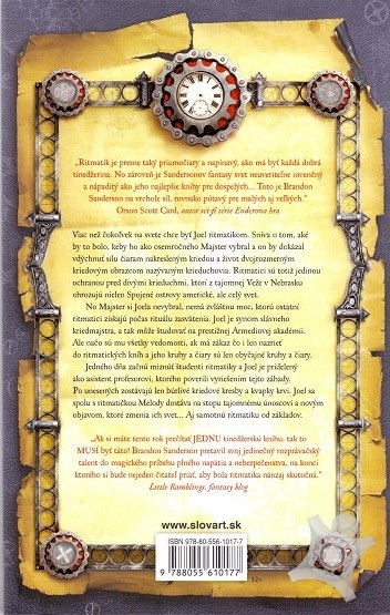 Ritmatik je prvý diel rovnomennej fantasy série od Brandon Sanderson, jedného z najplodnejších a najuznávanejších autorov súčasnej fantasy. Príbeh vás zavedie do fascinujúceho alternatívneho sveta s prvkami steampunku, kde krieda nie je len školská pomôcka — je to zbraň, umenie aj tajomstvo.