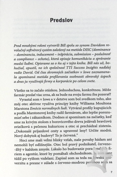 Pred mnohými rokmi vytvorili Bili spolu so synom Dávidom revolučný softvérový systém založený na metóde DISC (dominance - dominancia, inducement - inšpirácia, submission - poslušnosť a compliance - ochota), ktorá opisuje komunikáciu a správanie medzi ľuďmi. Opierame sa o ňu aj v tejto knihe. Bili nás už, bohužiaľ, opustil, no ich spoločnosť TTI Success Insights naďalej vedie Dávid. Od čias skromných začiatkov v Iowe zaznamenala spomínaná metóda profilovania osobnosti obrovský úspech a dnes ju využívajú firmy a korporácie po celom svete.