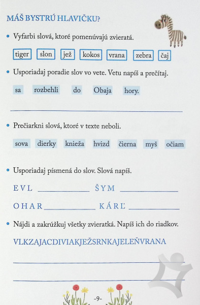 Za každým príbehom čakajú na deti zábavné úlohy zo sekcie „Máš bystrú hlavičku?", ktoré rozvíjajú čitateľskú gramotnosť, dôvtip a fantáziu. Deti sa učia pracovať s textom, odpovedať na otázky a premýšľať o prečítanom - základné zručnosti, na ktorých stojí celé neskoršie štúdium.