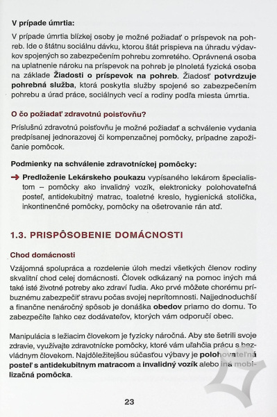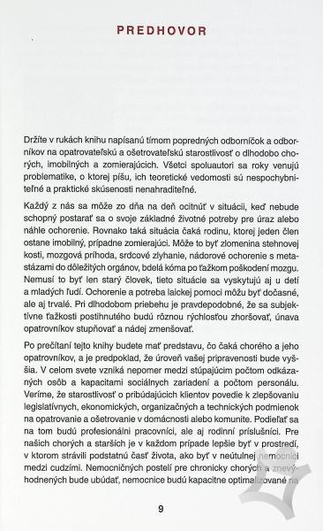 Kniha je neoceniteľnou pomôckou pre rodinných príslušníkov a laických opatrovateľov, ktorí sa starajú o chorého či imobilného príbuzného doma. Je tiež praktickým a premysleným darčekom pre ľudí v strednom a staršom veku - v každej rodine môže prísť situácia, keď sa takáto príručka stane nenahraditeľnou.