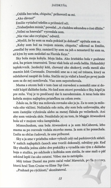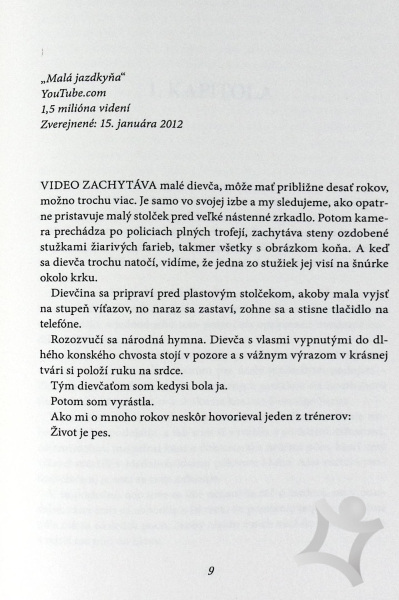 - Knižný klub-komunity aj čitatelia oceňujú rýchle tempo príbehu, krátke kapitoly a svižnú stavbu deja - román sa číta, ako keby kôň cválal.