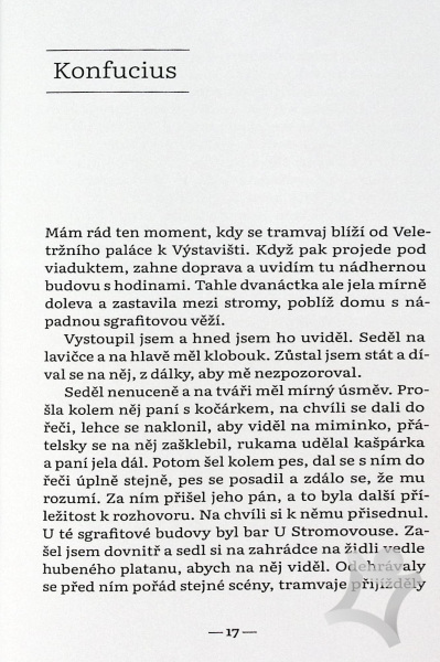 O našich životech někdy rozhodují detaily a nečekané momenty. Vysušená rostlina zeleného čaje ze sebe pustí to nejlepší, jen když ji zalijete přiměřeně horkou vodou. Aby z něj dostala to nejlepší, nesmí být úplně vařící. V životě jsem zažil už dost, abych pochopil, že některé události spočívají na špendlíkové hlavičce. Pro mě jím bylo setkání s mužem, při kterém jsem zažil déja vu. Začal jsem mu říkat Konfucius. Úplně změnil můj život a naučil mě hodně, třeba, že i když minulost byla nepříznivá, nesmí otrávit přítomnost.