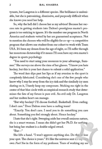 When Summer Preston’s professor issues her with an ultimatum, she finds herself on an unexpected collision course with hockey captain, Aiden Crawford. Summer hates everything about hockey, for good reason, but she isn’t going to let that stand in the way of her becoming a sports psychologist.