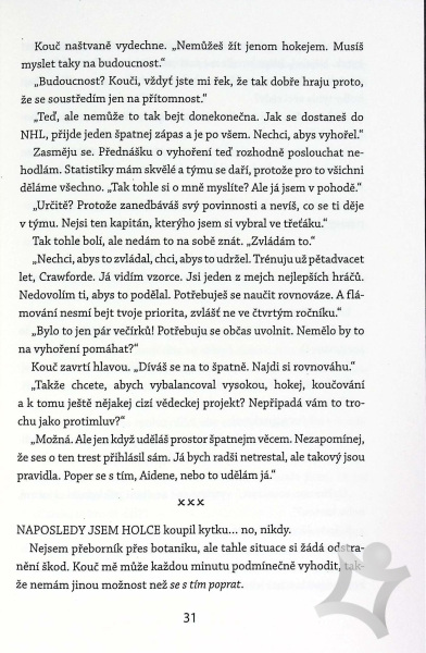 Hokejová romance tak žhavá, až ledy tají! Zpočátku se ti dva nemohou vystát. Summer má jasné plány – chce se stát sportovní psycholožkou. A nesnáší hokej. Pak jí studium přivede do cesty kapitána univerzitního týmu Aidena, který hokejem žije. Baví ho taky párty a vztahy na jednu noc. Vše se ale změní, když musí začít pomáhat Summer při výzkumu…