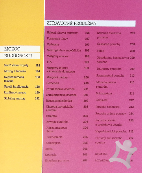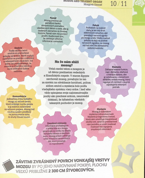 Jednoduchý a najnázornejší sprievodca mozgom. Skutočne sa mozog mužov a žien natoľko líši? Prečo sú tínedžeri vznetliví a odbojní? Podarí sa čoskoro prepojiť naše mozgy prostredníctvom cloudu? Táto kniha vychádza z najnovších výskumov a prevedie vás širokým spektrom otázok, od pamäti a osobnosti až po emócie a komunikáciu. A to všetko pomocou jasných, zrozumiteľných grafických znázornení.