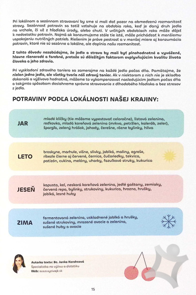Poslednú časť knihy tvoria 4 sezónne jedálničky. Pre každé ročné obdobie sme ich na týždeň zostavili z receptov z knihy a pridali konkrétne tipy na snacky či večere, ktoré si nevyžadujú zdĺhavú prípravu. A, samozrejme, sú rýchle a cenovo dostupné. Vidíme sa spolu v kuchyni? Sme si istí, že spoločne dosiahneme všetky tvoje (nielen) fitnes ciele :).