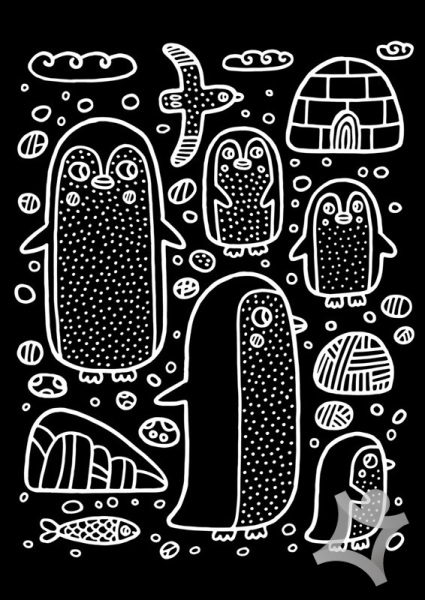 V našem originálním výtvarném sešitu je všechno naopak! Obvykle černé kontury půvabných obrázků jsou bílé a pozadí naopak černé… tak to tu ještě nebylo. Místo vybarvování celých ploch stačí pestrými pastelkami či neonovými fixy vymalovat jen bílé linky nebo některé z nich pro změnu jednoduše nechat prázdné. Uvnitř se na tvoje barvičky těší roztomilá zvířátka z farmy, savany, džungle, moře, louky, lesa a nechybí ani oblíbení domácí mazlíčci.