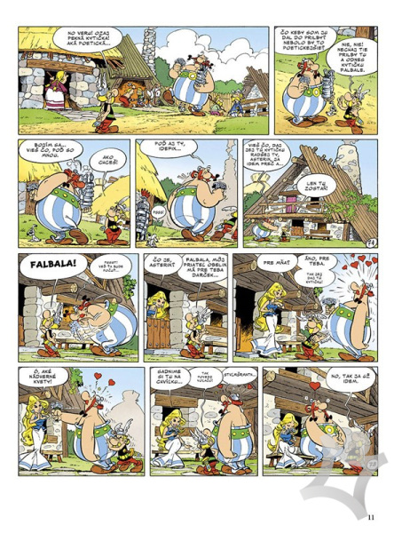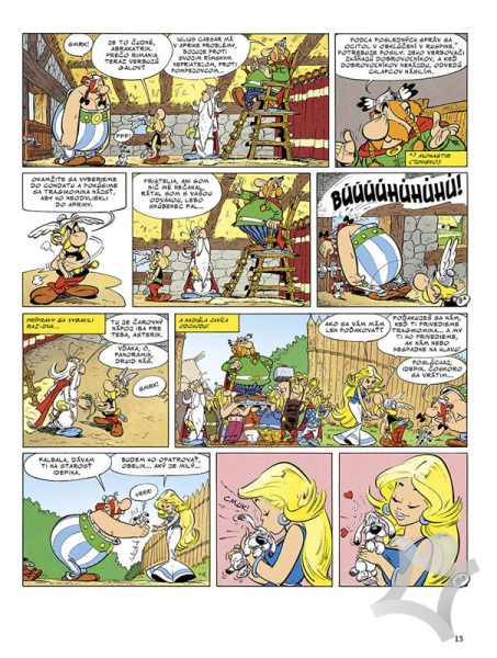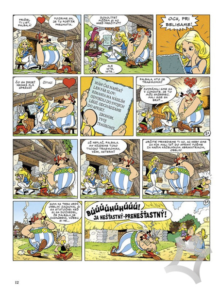 Do osady, ktorá stále odoláva rímskym legionárom, sa po dvoch rokoch vracia krásna Falbala a Obelix sa do nej zamiluje. No než sa stačí medzi nimi čokoľvek rozvinúť, všetkých prekvapí správa, že Tragikomixa, Falbulinho snúbenca, odvliekli Rimania do afrických légií. Asterix a hlavne Obelix neváhajú a ihneď vyrážajú mládencovi na pomoc.